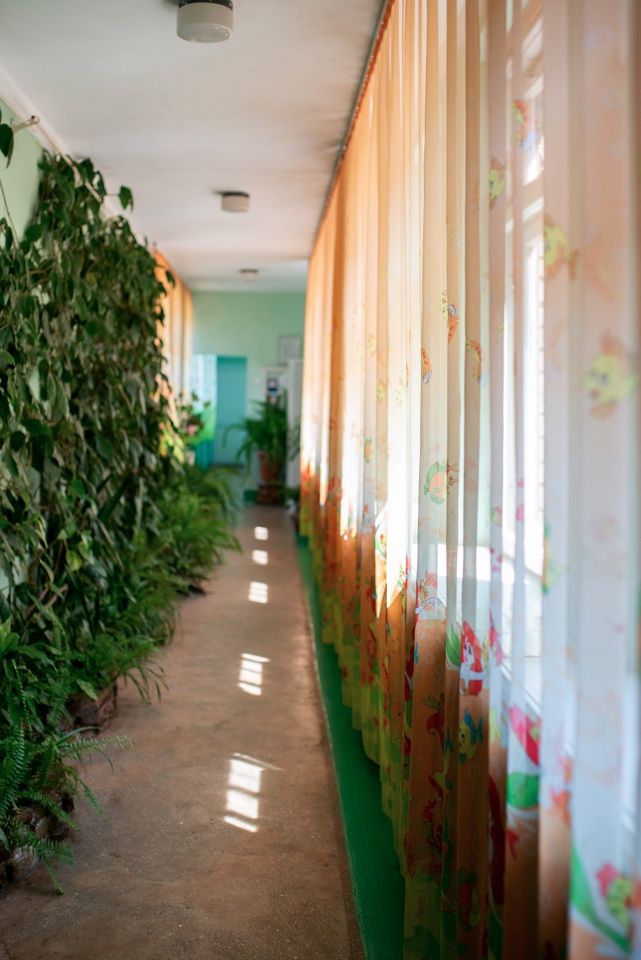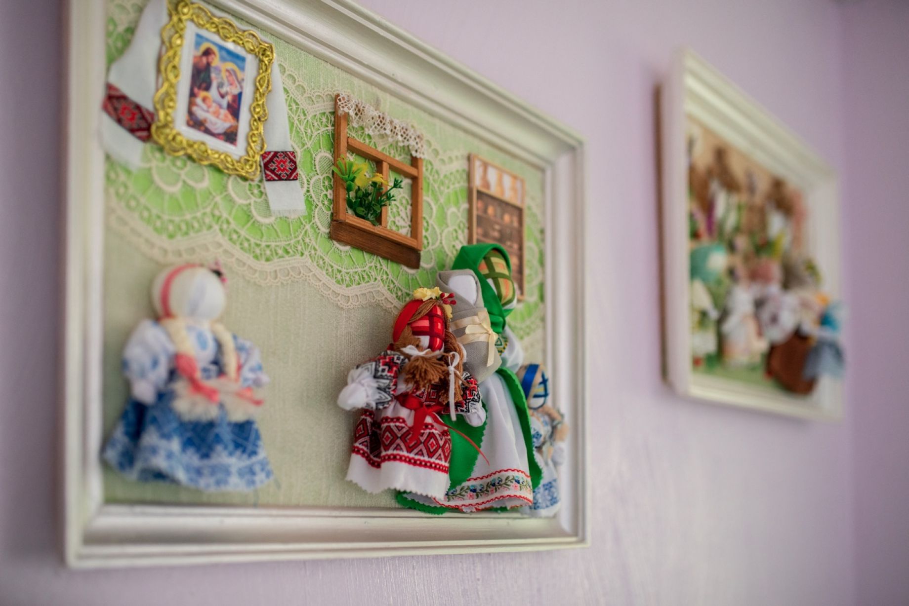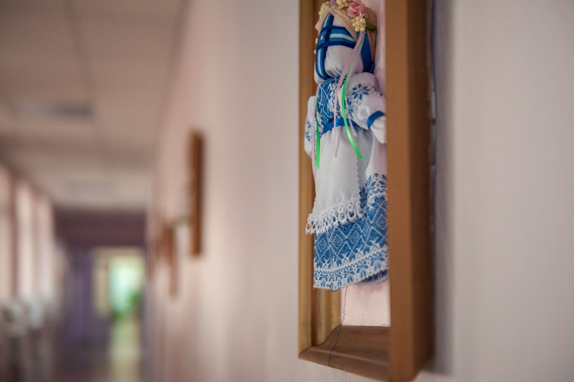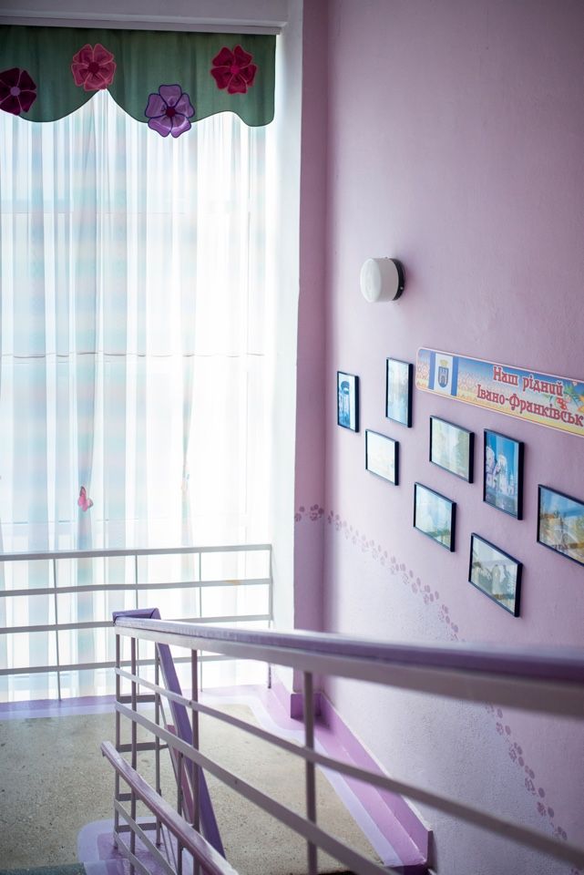 Внутрішні коридори просторі, відремонтовані, добре освітлені. Оформлені у стилі української іграшки – ляльки-мотанки. Кожна із сходових кліток завершується стилізованими карпартаріями з фонтанами та водоспадами.